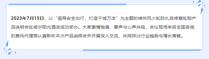 【咸寧站】“倡導安全出行,打造千城萬店”神州風火輪智能防扎自修復輪胎產(chǎn)品說明會