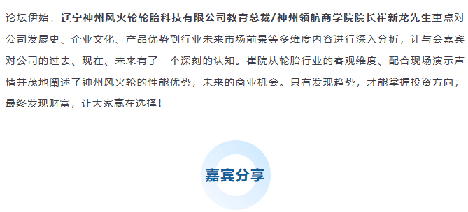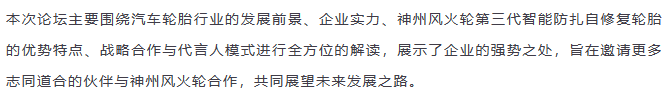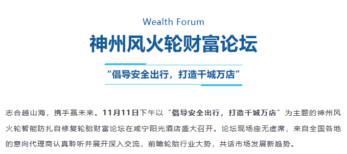 【盤錦站】“倡導(dǎo)安全出行,打造千城萬店”神州風(fēng)火輪智能防扎自修復(fù)輪胎財(cái)富論壇