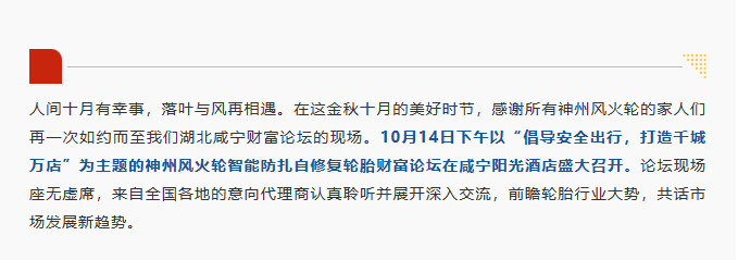 【咸寧站】“倡導(dǎo)安全出行,打造千城萬店”神州風(fēng)火輪智能防扎自修復(fù)輪胎財富論壇