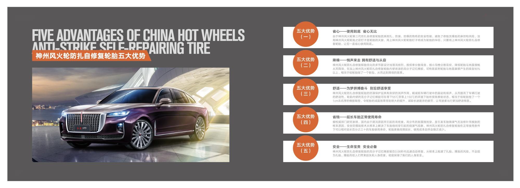 神州風(fēng)火輪智能防扎自修復(fù)輪胎介紹 隨著人們生活水平的不斷提高,汽車已經(jīng)進(jìn)入尋常百姓家庭成為各個(gè)家庭生活當(dāng)中必不可少的代步工具。在大家享受著汽車帶給我們出行便利的同時(shí),也往往因?yàn)槲覀儗σ恍┎考暮鲆晫?dǎo)致一些煩惱和意外的發(fā)生。輪胎作為汽車使用過程中不可或缺的重要組成部分,不僅承載著汽車的全部重量,同時(shí)也是駕駛舒適性和行駛安全性的基礎(chǔ)保障。輪胎安全是汽車行駛過程中的重中之重,行業(yè)中流傳著這樣一句話高速爆胎≈生命報(bào)廢,所以說高速爆胎是危害駕乘安全的最大殺手。但大多數(shù)人對于輪胎的認(rèn)知度卻知之甚少,從而使扎胎爆胎以及由此引發(fā)的意外不斷的在我們身邊上演。據(jù)權(quán)威部門統(tǒng)計(jì)顯示,我國每年在高速公路上發(fā)生的交通事故多達(dá)30多萬起。在這30多萬起的交通事故中,其中76%以上與輪胎高速爆胎有關(guān),也就是說100起交通事故中就有76起和輪胎有關(guān)系,所以說輪胎安全不容小覷,輪胎安全升級勢在必行。